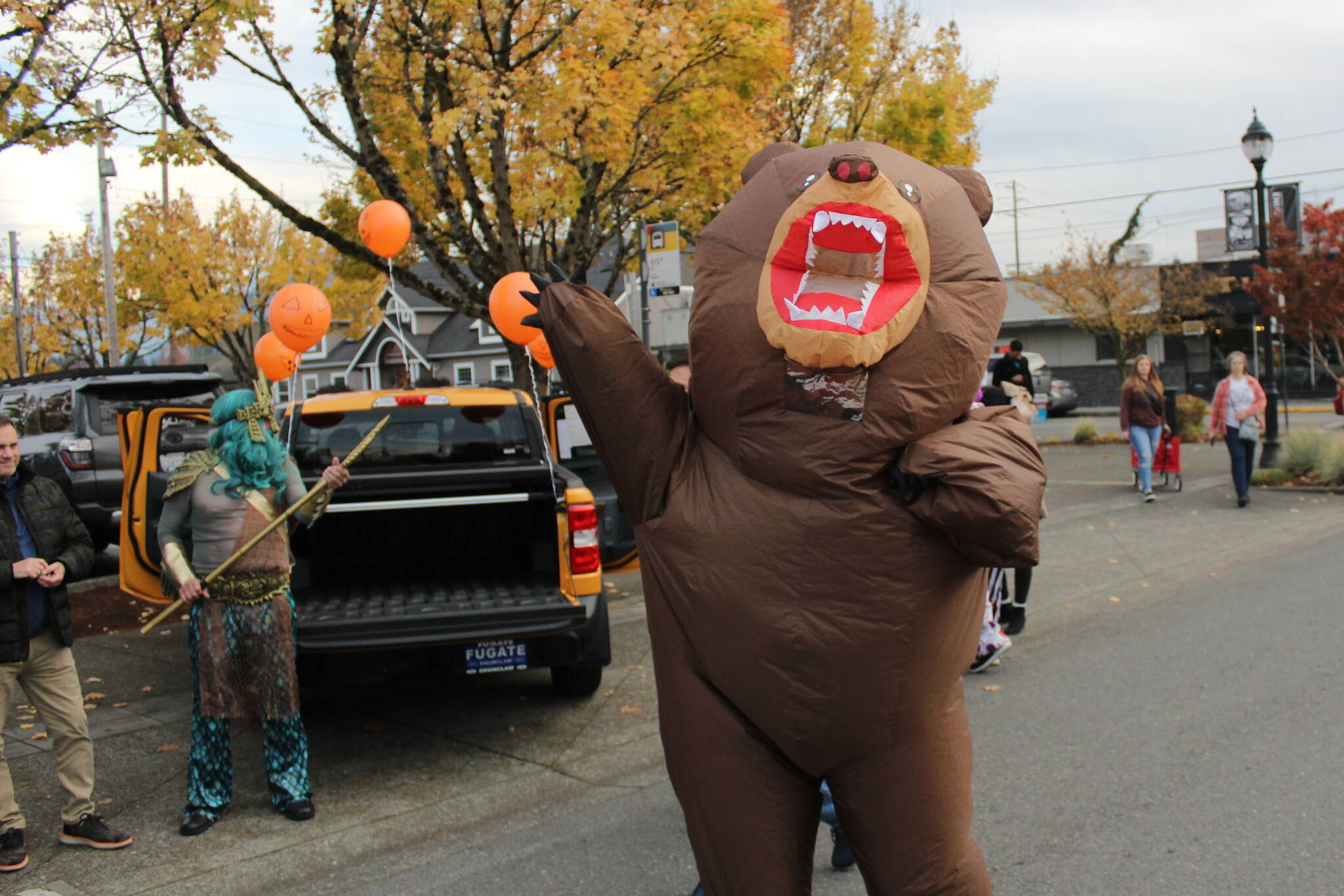 OK, the Enumclaw Chamber of Commerce advertises the annual Halloween closure of Enumclaw’s main drag as having “nearly endless candy” but it always seems no one walks away without a full bucket (or two).