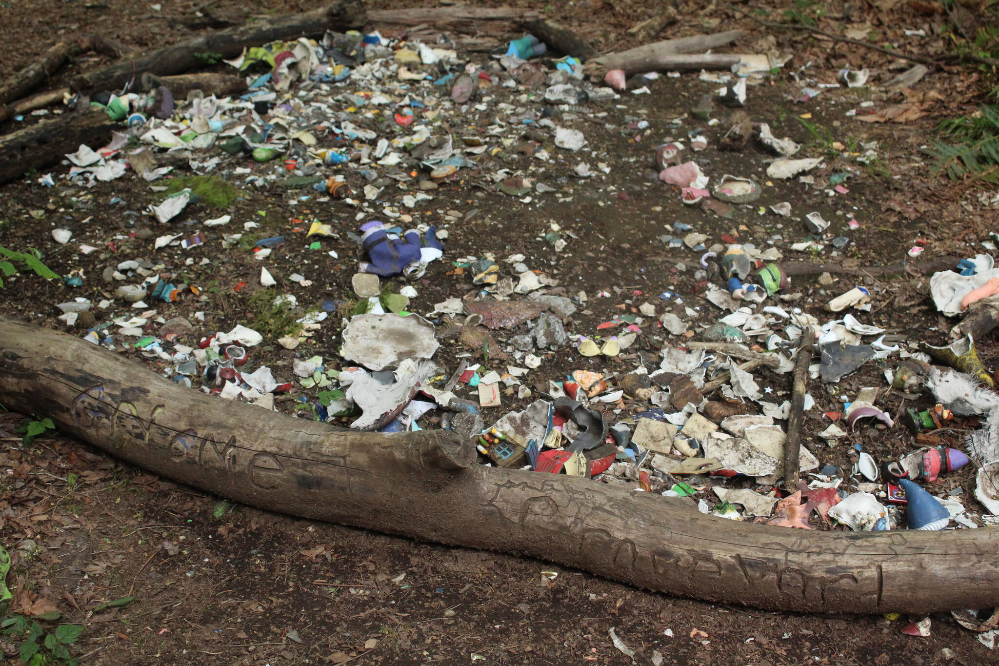Volunteers and park workers clean up the broken pieces as often as possible and place them in a spot on the trail called the Gnome Graveyard, where the destroyed gnomes are safely stored.