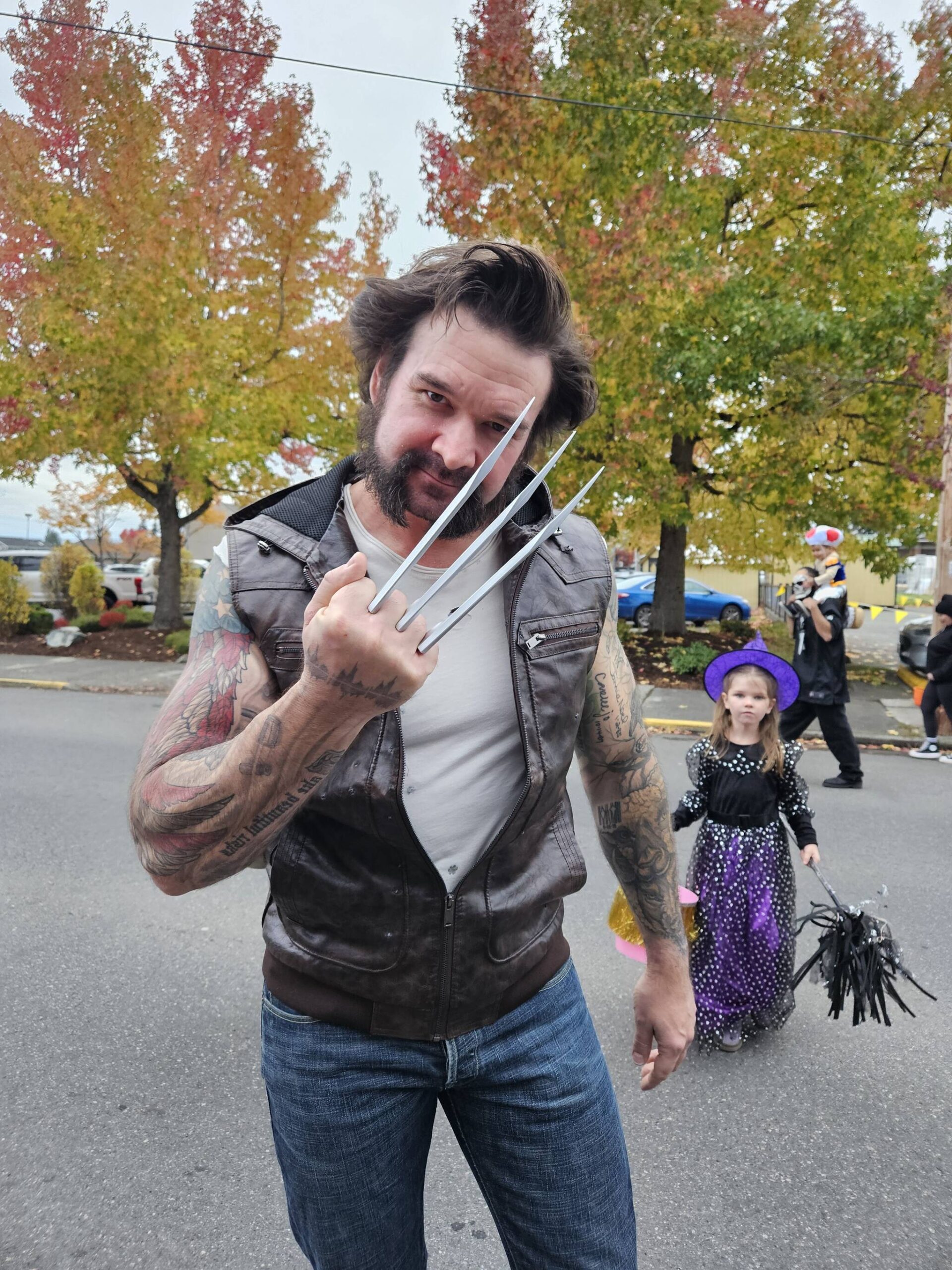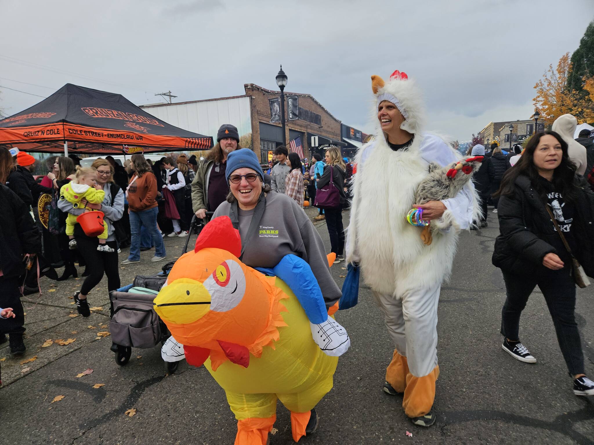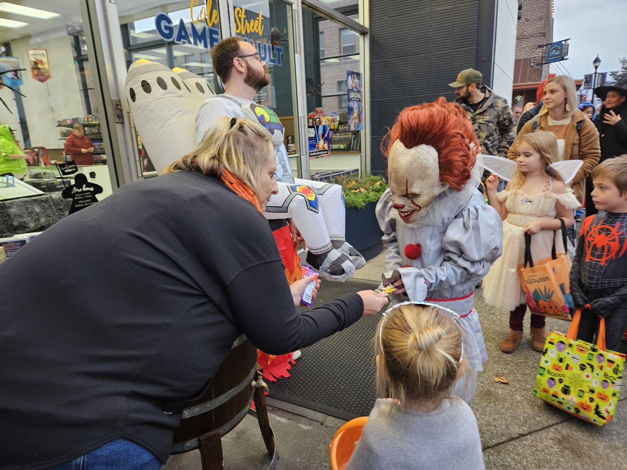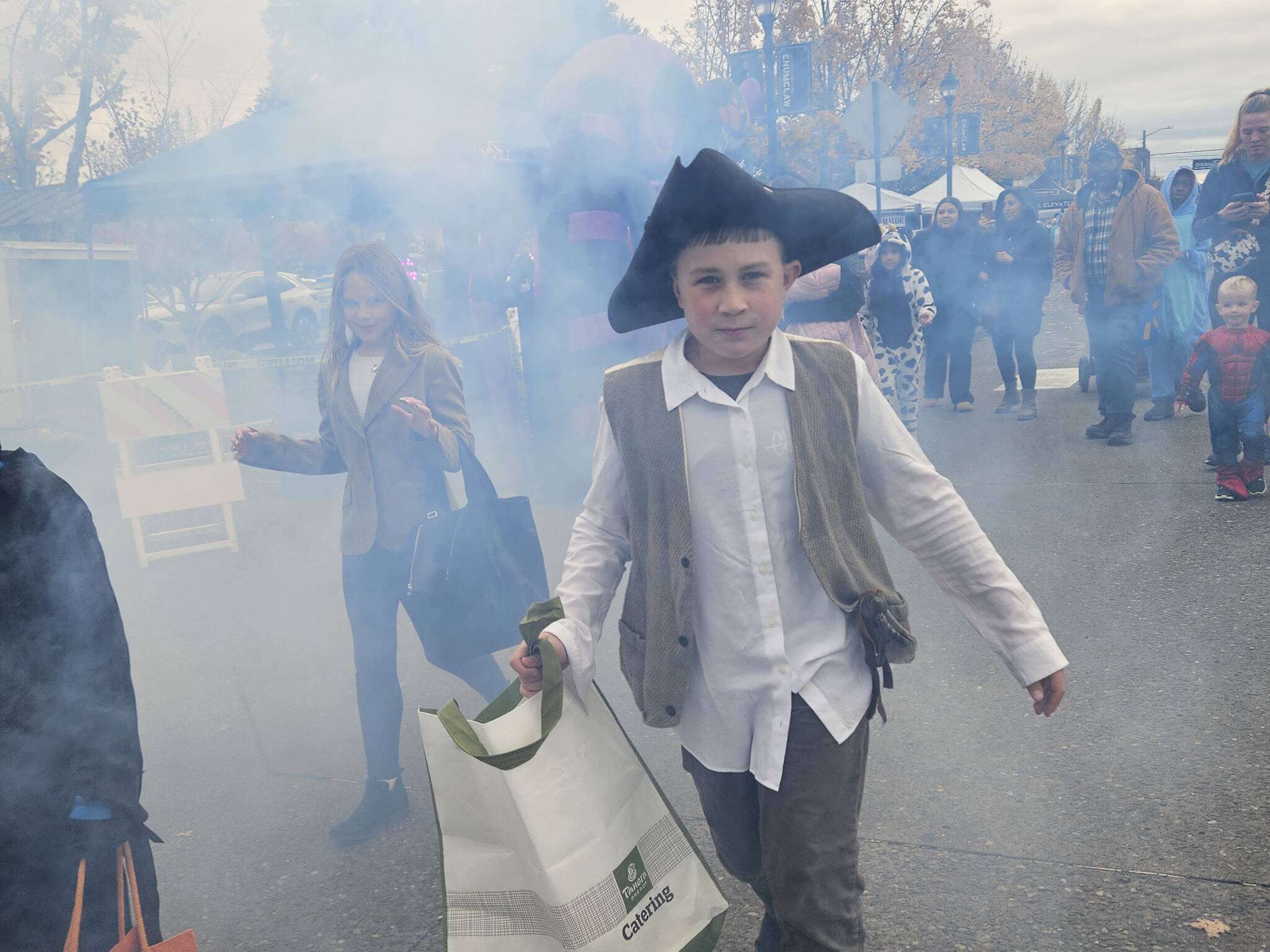 Hundreds of kids and their families trick or treated on Enumclaw’s Cole Street last night before the rain started to come down.