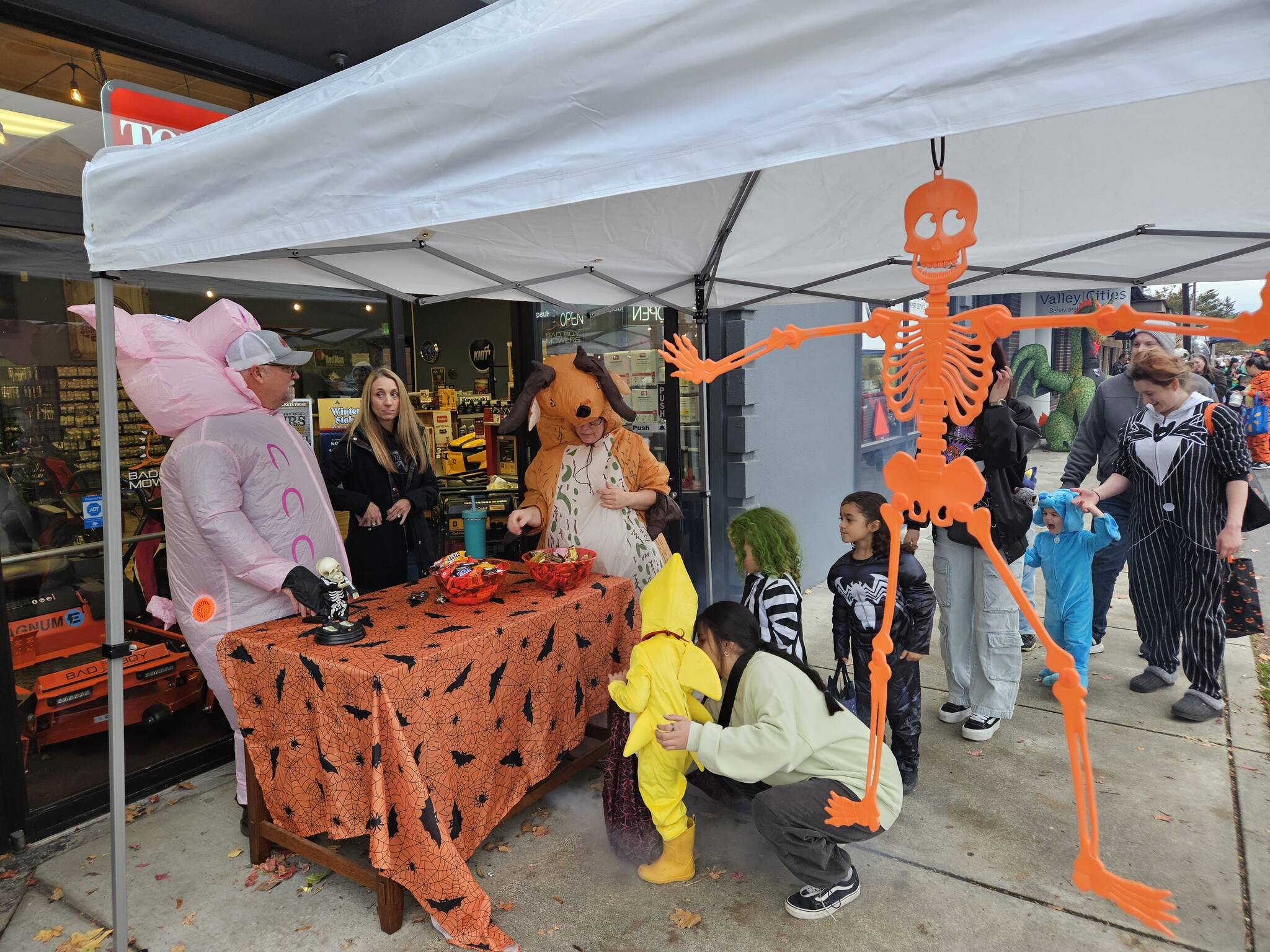 This year’s event, hosted by the Enumclaw Chamber of Commerce, had a few extra perks this year, including a live DJ, a smoke machine, and an even longer trick or treat route. Additionally, The Ballet Workshop performed its ever-popular Thriller dance for their captive audience throughout the evening.