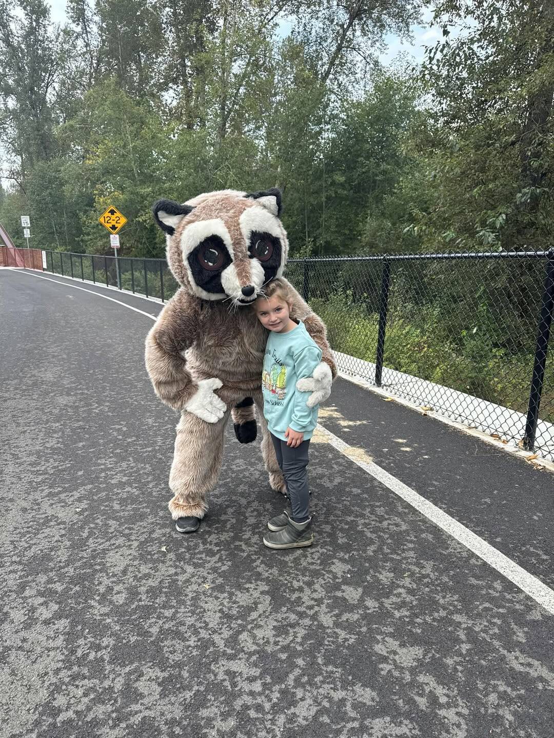 “Our mascot is a raccoon, but we just happened to find that one while we were walking over the bridge,” she said. “It was just somebody just dressed up like a raccoon. I’m tempted to buy a raccoon suit now. It was a complete coincidence.”