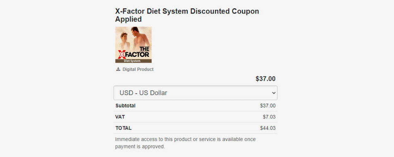 This program is available in digital format. This means that people can download its content on their computer, phone, or tablet after purchasing it. There are no deliveries, hidden costs, or subscriptions involved with getting it. Payments can be made via card or PayPal. The X Factor Diet is not being sold anywhere else online aside from its official website, where it’s sure to be the original program as per John has created it, come at a discounted price, and include the money-back guarantee that’s offered on it. At the moment, The X Factor Diet costs only $37 + VAT, so a total of $44.03.