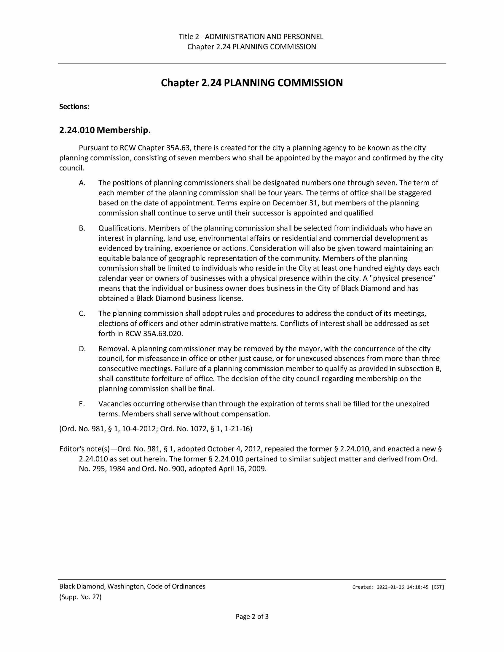 Black Diamond posts Planning Commission vacancies