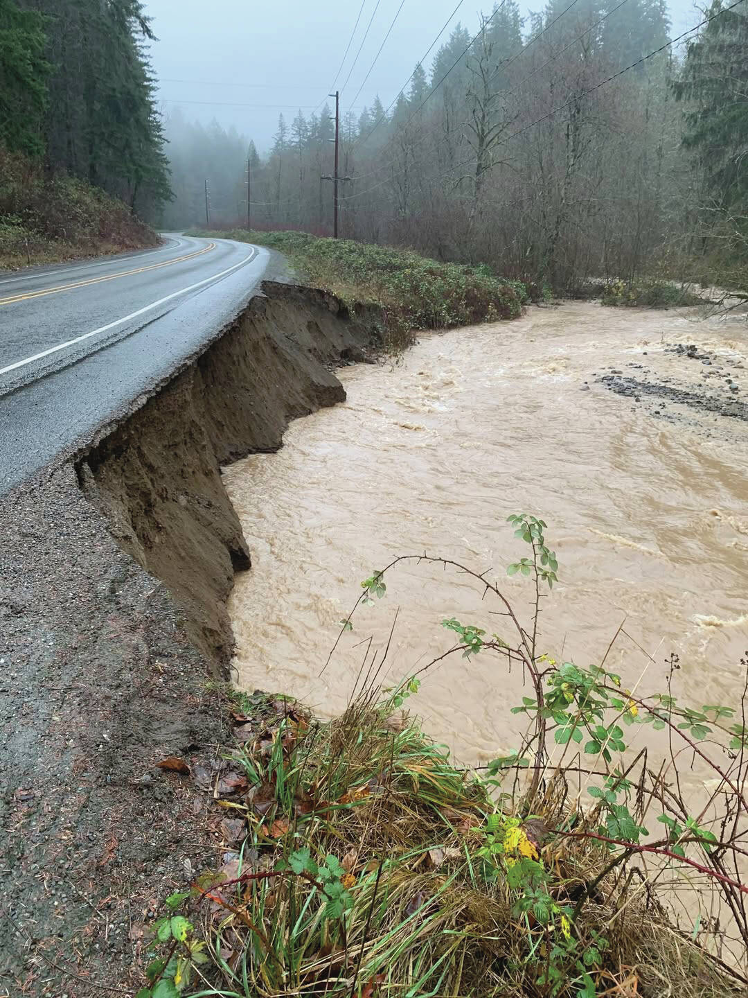 However, SR 410 remained closed as of the morning of Dec. 15 — the highway was closed Dec. 10 at milepost 38, cutting off access to Greenwater. WSDOT crews on site described how water from the White River came up to their headlights and sloshed into their trucks.