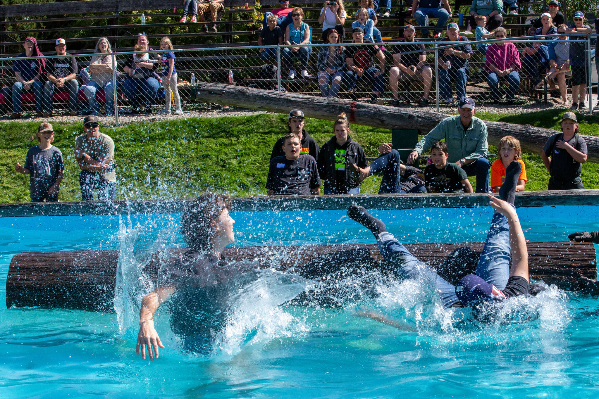 At the junior show, 109 kids from three to 17 years old competed in choker setting, rope climbing, obstacle pole bucking, log rolling, tree climbing and more. Young kids threw wooden axes instead of the real kind.