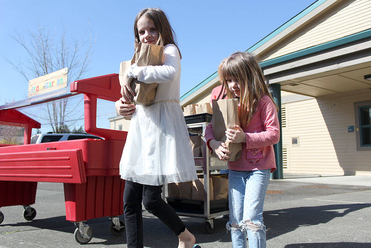 Delivered in a single bag are two meals, one breakfast and one lunch. They are being distributed from all five district elementary schools, both middle schools, Enumclaw High and the district’s Birth to Five Center.