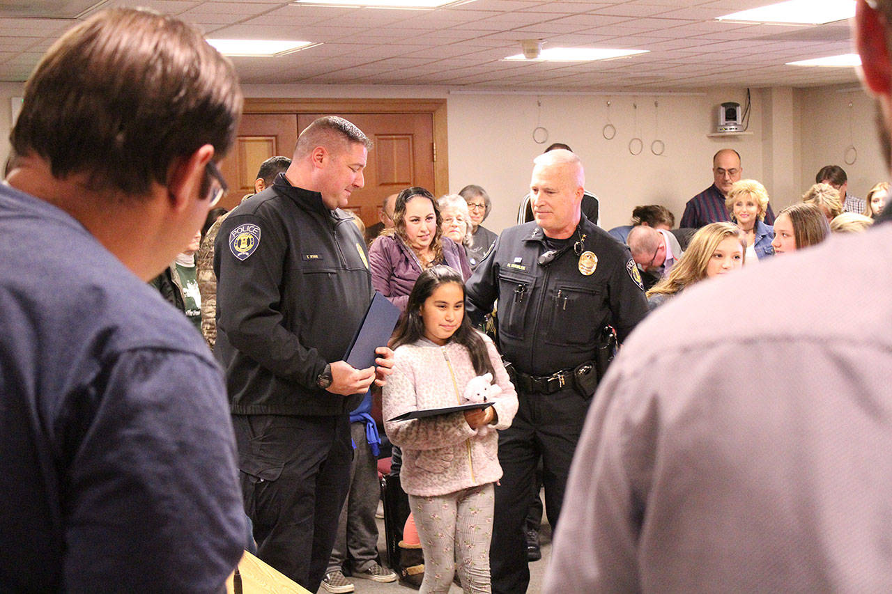 The police department, along with Mayor Jan Molinaro, surprised Ryan during the packed Feb. 17 council meeting with a Life Saving award, which is given to officers who are able to save or prolong another’s life through their actions.