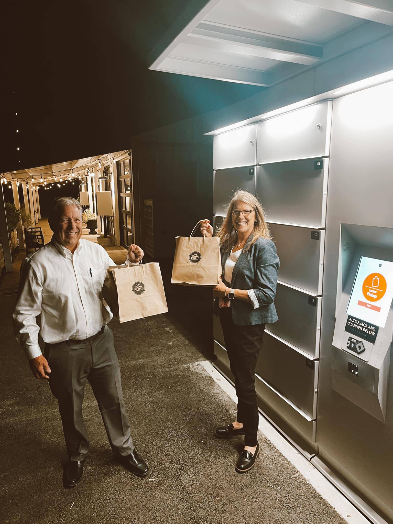 Courtesy photo Pierce County Council member Dave Morell and his assistant Judy Hurley, who lobbied the county to fund The Market’s locker, pick up an order of fresh food.