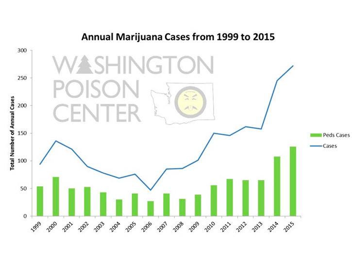 Over the last 10 years, the annual number of calls into the Washington Poison Center related to cannabis and cannabis products has been increasing. This trend continued in 2015 with a total of 272 calls, an increase of more than 10% over 2014’s cases.