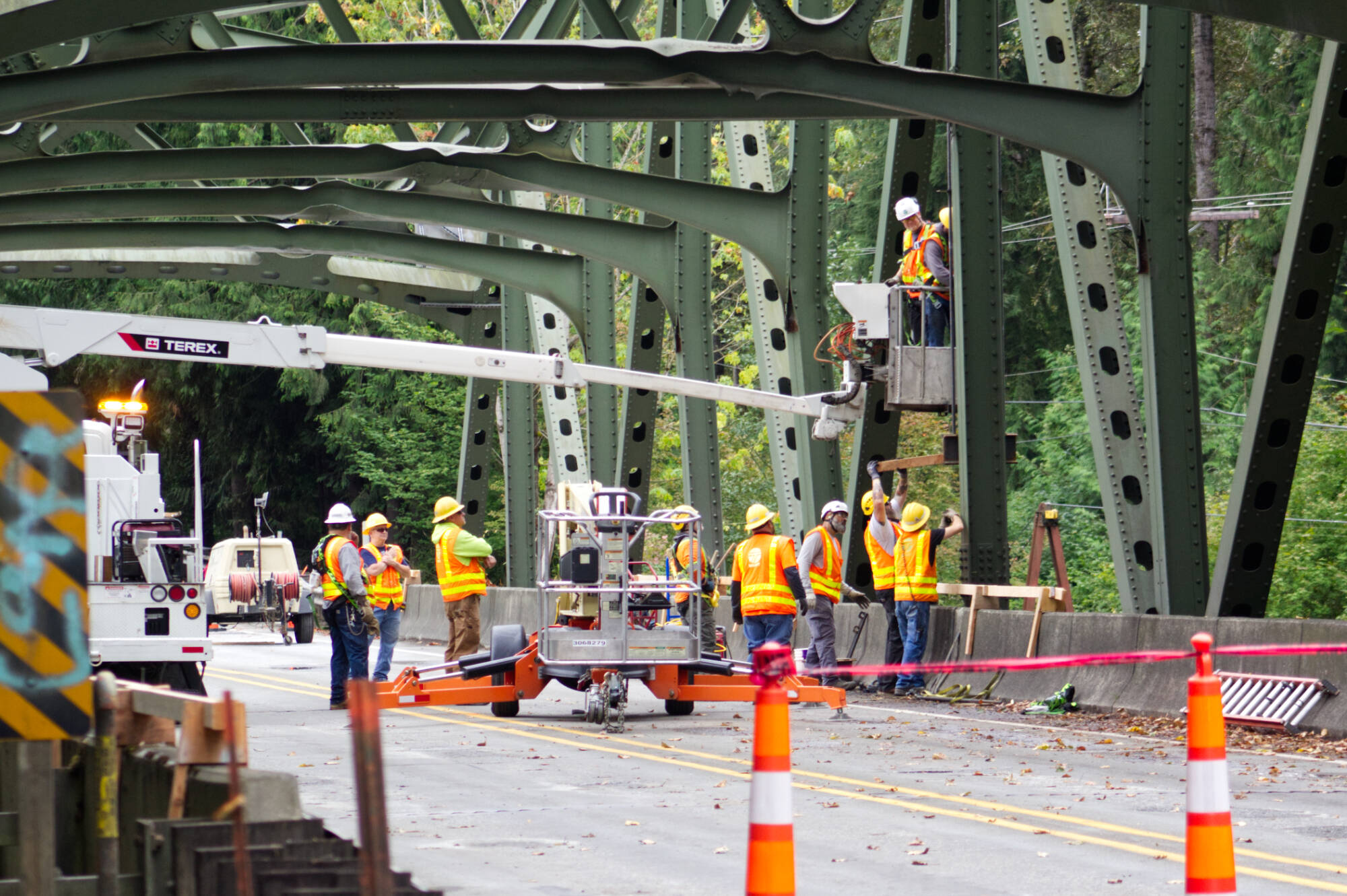 “We were actually really lucky that we didn’t have another Skagit River incident here,” Swett said, making mention of the 2013 I-5 bridge collapse when an oversize load struck the overhead support beams. “… The design of this truss is a little different than that one. It was a little more resilient, and we didn’t lose the whole bridge, thank goodness.”