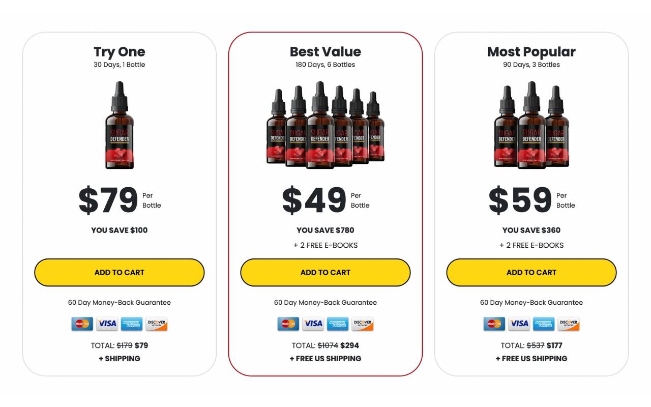 These pricing options cater to individuals looking for varied quantities of Sugar Defender at cost-effective rates, ensuring both affordability and convenience in your purchase. Choose the package that aligns with your health goals and enjoy the benefits of this powerful blood sugar support supplement.