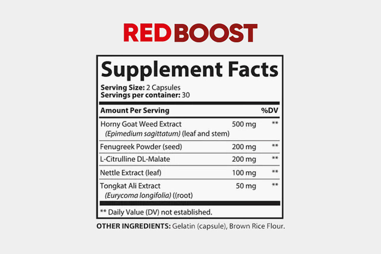 Red Boost, made from a natural potent blend of five ingredients, works by enhancing blood flow and smooth muscle functions. According to its creators, this helps unlock the door leading to frequent, rock-hard, and longer-lasting erections.