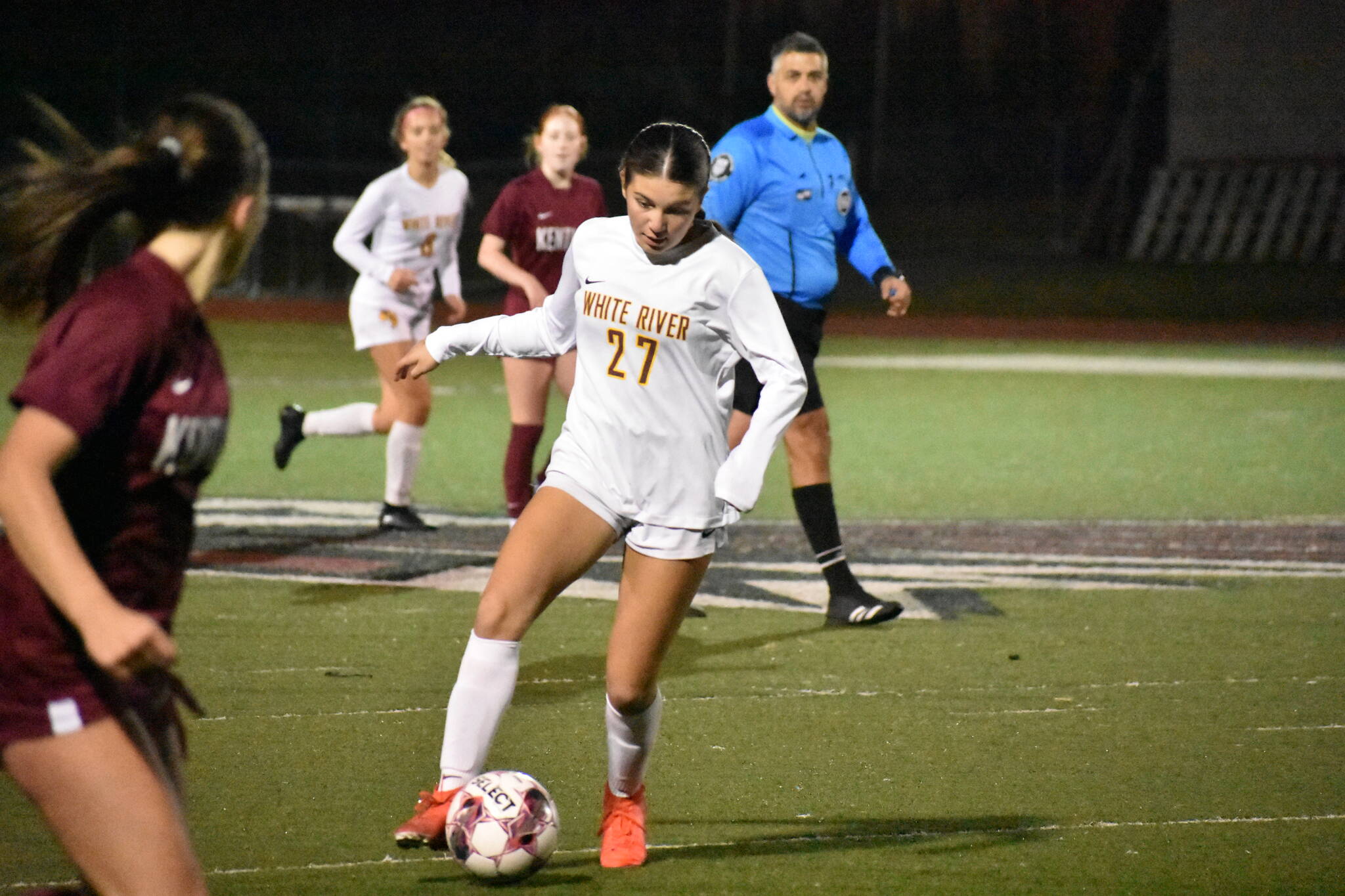 White River was methodical and tactical early on and caused problems for Kentlake, and inside of five minutes scored the game’s first goal. A pass dropped back to goalkeeper Grace Engebo didn’t get cleared as far as the team was expecting, leaving them vulnerable. White River sent it back into the penalty area and caused some confusion. White River’s Lillian Banks pounced on the loose ball and scored.