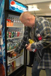 Bonney Lake Food Bank Executive Director Stew Bowen stocks the cooler at the Snack Shack at Allan Yorke Park in preparation for this weekend's opening.