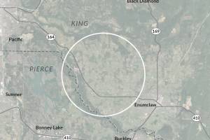 The Washington State Department of Transportation used this image in an online open house to show the approximate location that a “King County East” airport would be considered. The image reflects the general area the report considered and is not an exact snapshot of the hypothetical airport’s geographic footprint.